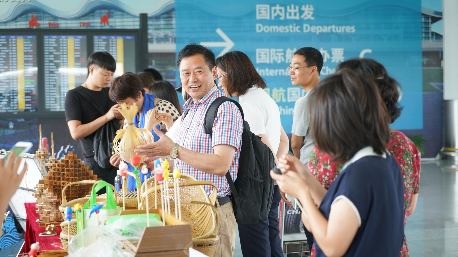 2018年6月7日,“邂逅浙江非遺藝術(shù)”傳統(tǒng)文化體驗(yàn)活動(dòng)邀請(qǐng)了四位來自蘭溪的非遺傳承人,表演孔明鎖、剪紙、捏泥人、竹編四項(xiàng)非遺傳統(tǒng)手藝,并讓旅客親身體驗(yàn)傳統(tǒng)手工藝術(shù),感受非遺文化的無限魅力。
