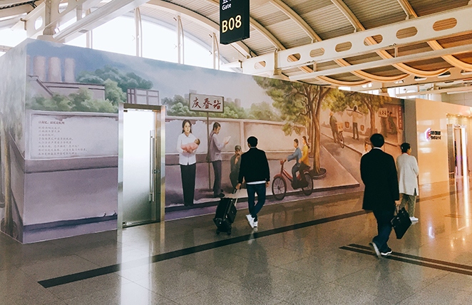 航站區(qū)中心打造“杭州記憶”主題墻繪