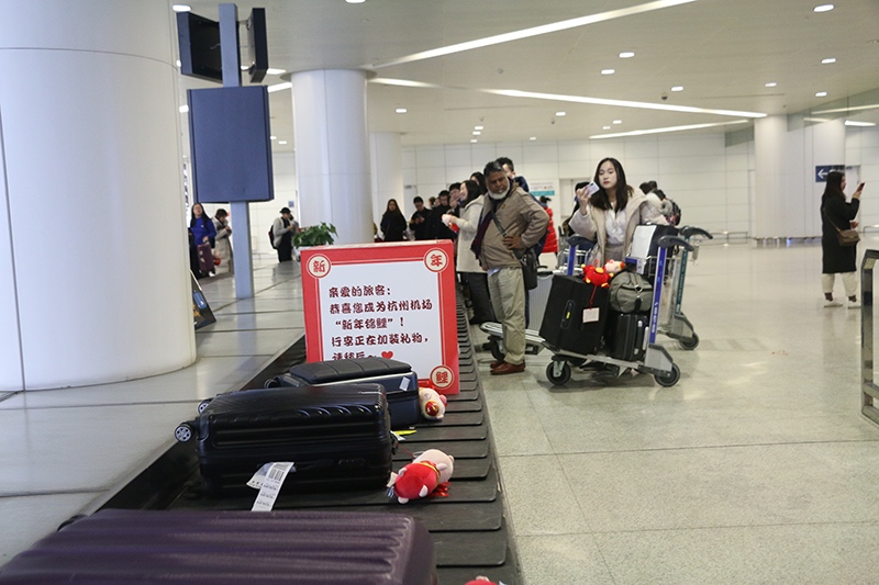 1月1日,83件系著豬年玩偶和新年賀卡的托運(yùn)行李驚喜亮相T3航站樓B10行李轉(zhuǎn)盤(pán)。這是航站區(qū)中心組織策劃的"好運(yùn)首開(kāi),錦鯉呈祥"新年活動(dòng),在地勤公司行李部的協(xié)助配合下,從廣州飛抵本場(chǎng)的CZ3803航班上的83件托運(yùn)行李主人成為了新年"幸運(yùn)錦鯉"。驚喜活動(dòng)讓現(xiàn)場(chǎng)旅客興奮不已,紛紛拿出手機(jī)記錄下感動(dòng)的一幕,開(kāi)啟了2019年"溫暖航站樓"的序幕。(航站區(qū)中心 朱偉 任嘉婷)
