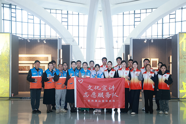 本次志愿講解隊伍的核心力量,由杭州機場與浙江大學出版社黨員黨員組成;此外,團隊中還匯聚了高校藝術專業師生、熟悉國際交流的企業黨員、資深志愿者及一線機場職工等多元力量。盡管大家來自不同領域、崗位各異,但投身中華優秀傳統文化傳播的熱情始終如一,如冬日暖陽般溫暖著每一位往來旅客。“能在旅客抵達杭州的第一站,為他們推開一扇了解中國繪畫的窗,哪怕只是短暫駐足,也是一份真誠的‘文化見面禮’。”擁有28年志愿服務經歷的黨員馬翔,道出了所有志愿者的共同心聲。