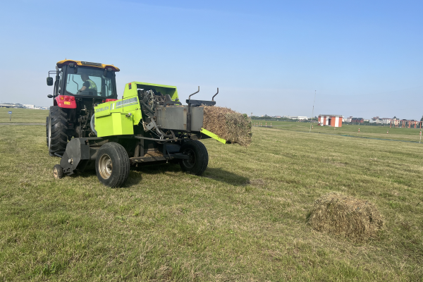 飛行區中心首次在土面區割草作業中應用摟草打捆機