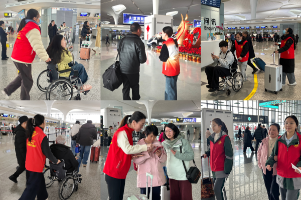 春運首日,航站區中心依托黨員“初心站”先鋒平臺,正式啟動“春運暖冬行動”志愿服務。整個春運期間,志愿服務力量持續增強——航站區中心黨總支黨員作為日常支撐,公司團委、指揮中心黨總支、基建部黨支部、食品公司黨支部共同組成黨團員先鋒隊,與社會志愿者并肩服務。在值機大廳,志愿者們耐心提供咨詢引導;在候機區域,黨團員志愿者主動協助老弱、首乘等旅客前往登機口;在行李轉盤處,他們熱情協助旅客搬運行李……一抹抹“志愿紅”在航站樓內流動,成為這個春運最溫暖的風景線。